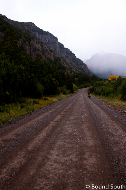 If_Patagonia_is_the last land for Bound South, the Carretera Austral is the last highway.  Built in the Pinochet era, it is one of the most ambitious infrastructural projects in Chile’s history.  Winding through the harsh mountains, rivers, lakes, and fjords of southern Chile, the Austral runs over 1200 kilometers from Puerto Montt in the north to Lago O’Higgins in the south.